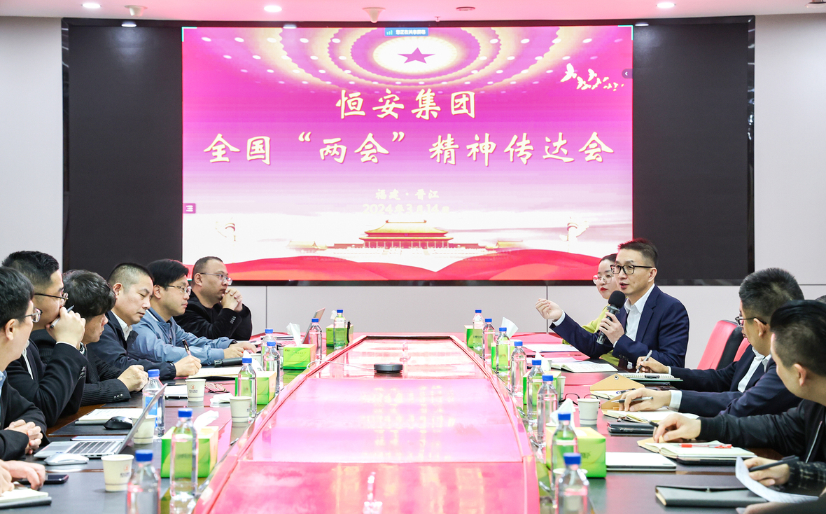 3月14日,恒安集團在總部召開傳達學習全國兩會精神專題會議,全國政協委員、集團總裁許清流,全國人大代表、福建恒安家庭生活用品有限公司質檢員方華娟,以及130多位集團管理層以線上、線下的方式共同參會。