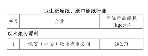 行業唯一!恒安中國紙業入選國家重點行業能效“領跑者”企業名單