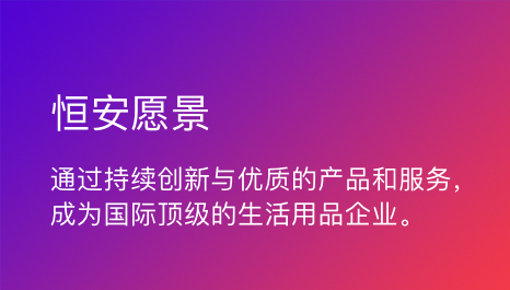 恒安堅持“誠信、拼搏、創新、奉獻”的精神,以“追求健康,你我一起成長”為使命,通過持續的創新與優質產品服務,致力成為國際頂級的生活用品企業。